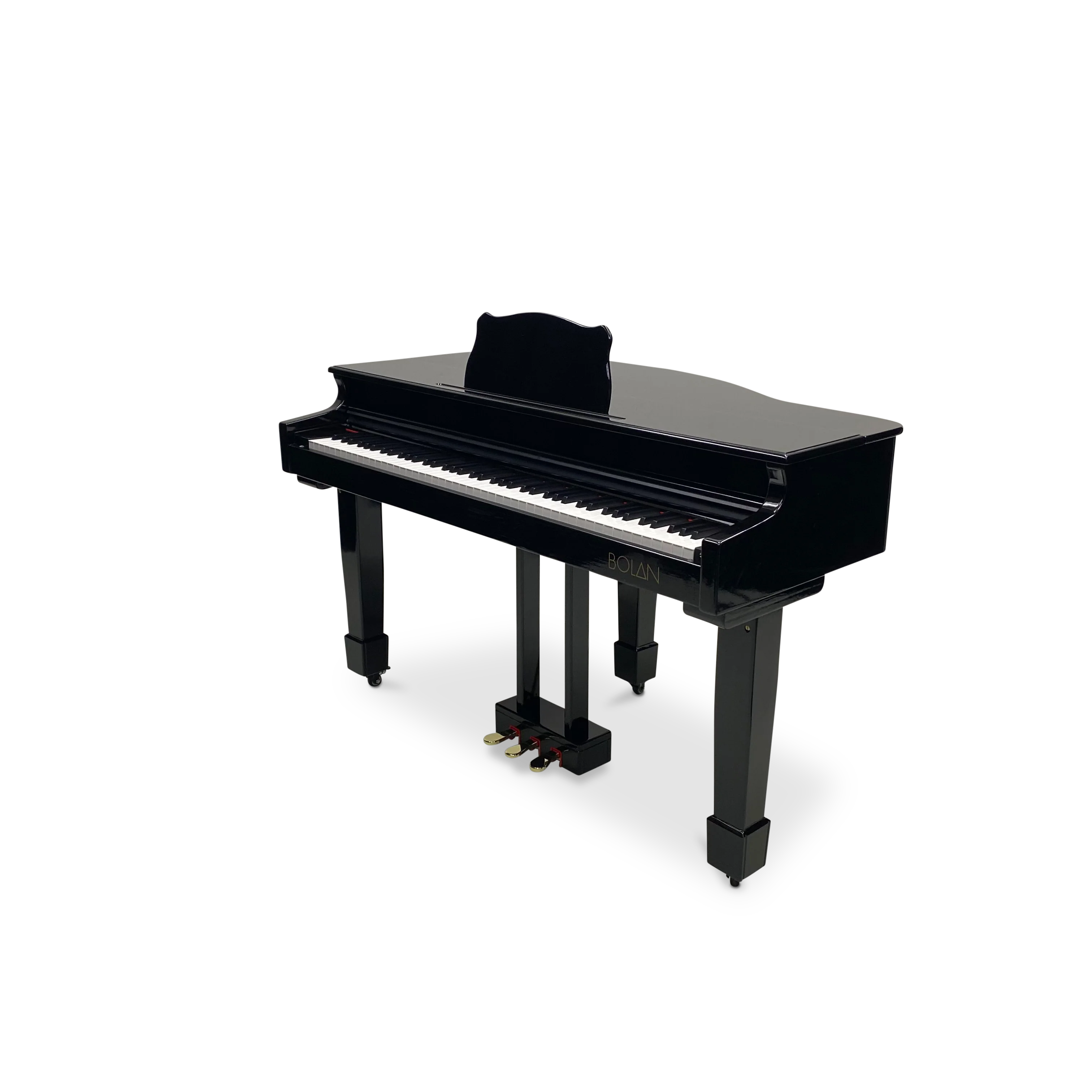 De Bolan GP-1 is een prachtige digitale babyvleugel met een uitstekende prijs-kwaliteitverhouding. Dit model van ons eigen merk Bolan combineert een luxe uitstraling met geavanceerde technologie en is uitgevoerd in hoogglanslak. Verkrijgbaar in zwart, wit en een bijzondere rode hoogglans, is deze digitale vleugel een stijlvolle toevoeging aan elk interieur.