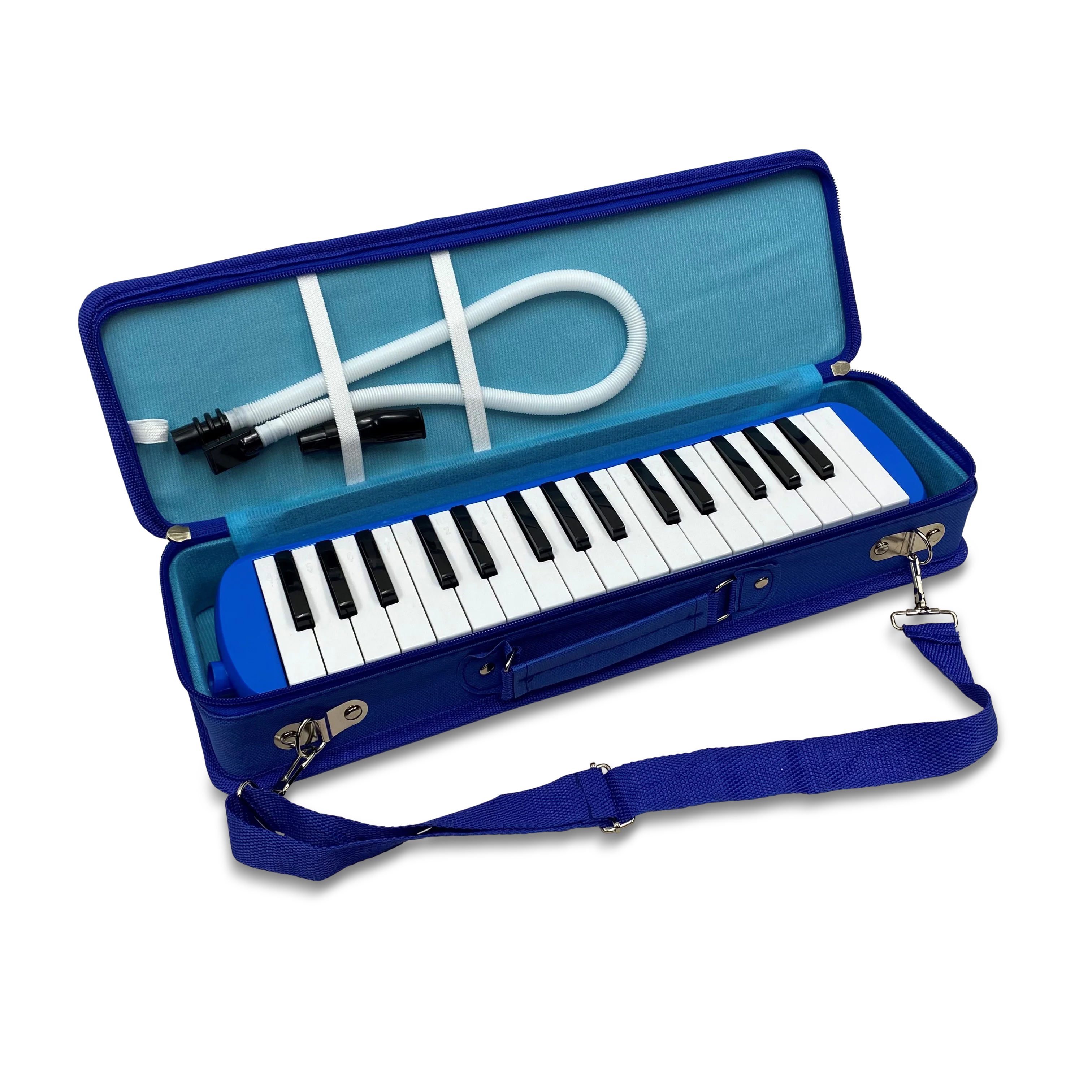 Strak Blauw Ontwerp: Niet alleen een instrument, maar ook een mode-accessoire. Het opvallende blauwe design van onze Melodica maakt een statement en voegt een vleugje stijl toe aan je muzikale uitingen.
