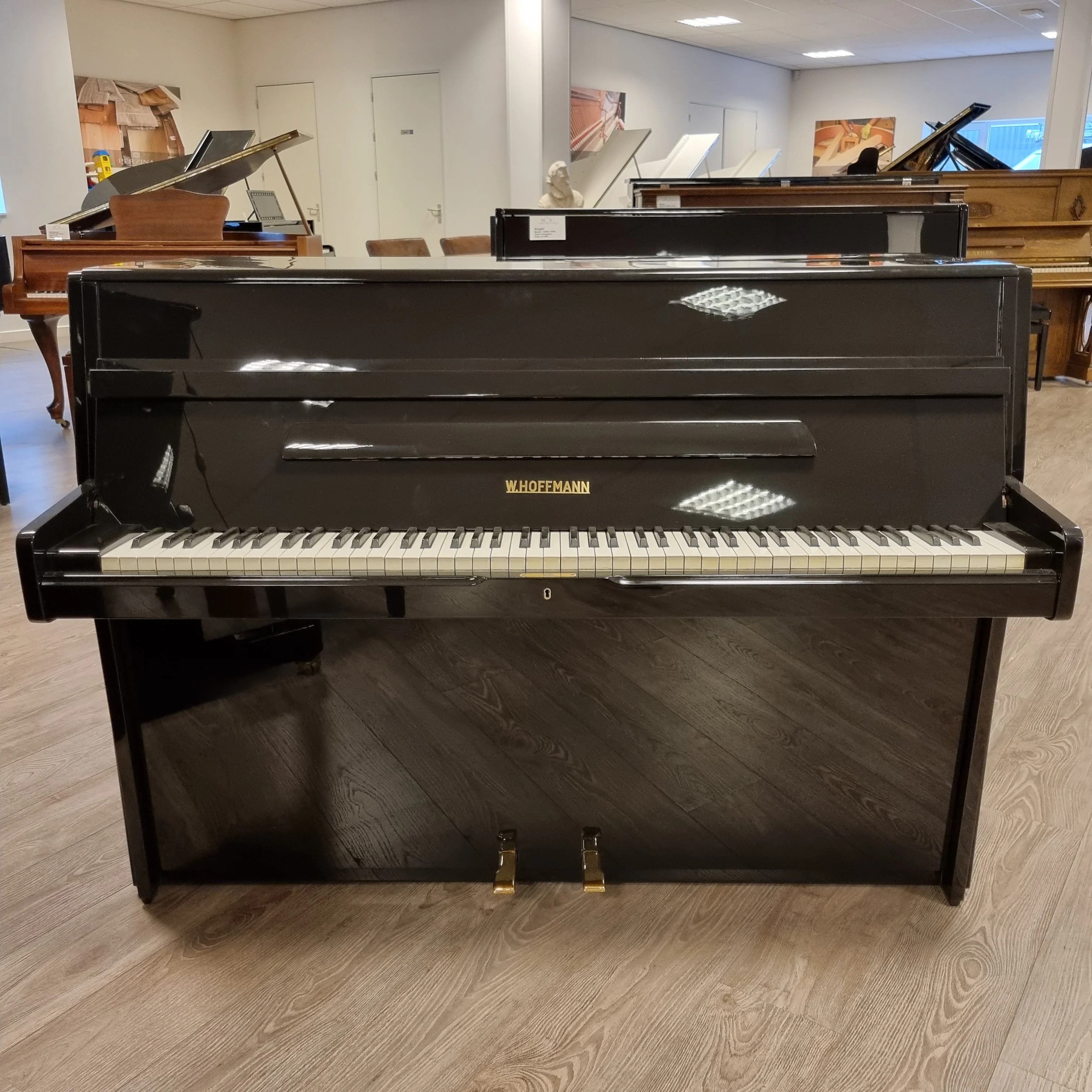 Duitse W. Hoffmann piano in goede conditie. Door ons nieuw zwart hoogglans gespoten.